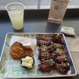 I had the Chicken tender combo with the classic sauce and cucumber kimchi ($22) for lunch today and was pleasantly surprised. The food took just 7 or 8 minutes to come out and the four tenders were enough for me but a bit small for the price. The waffle fries were well seasoned and I didn't need to add any sauce. Unfortunately, the cucumber kimchi wasn't overly flavorful and just a small 6 oz cup for $4. I will be back for lunches in the future.
